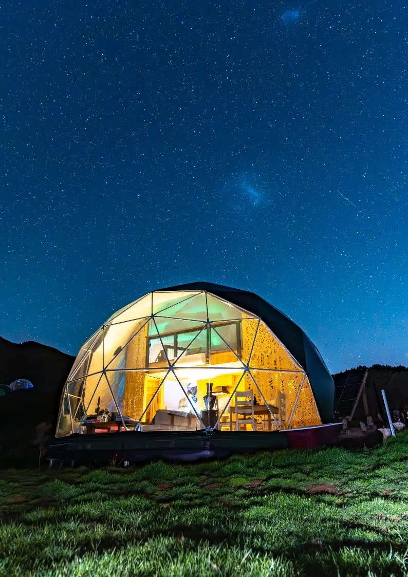 Stunning regenerative accommodation set on 8 hectares of retired farmland in Pukerua Bay, just 35mins drive from central Wellington. Set just above the epic escarpment track, the views are truly magical. Scroll down for a photo tour of the site or click Explore our Domes for details and descriptions